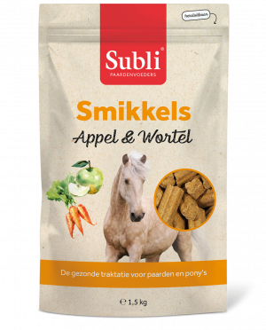 Elk paard en elke pony verdient op zijn tijd een lekkere traktatie in de vorm van een paardensnack of paardensnoepje. Een paardensnack is vaak plezier voor twee. Want niet alleen je paard geniet op zo’n moment van iets lekkers. Als eigenaar geniet je evenveel van het geven van zo’n smakelijke beloning aan je lieveling. Paardensnacks zijn trouwens niet alleen maar een verwennerij. Je kan paardensnacks en paardensnoepjes ook geven als fijne beloning na een goede prestatie, of je kan ze gebruiken om je paard of pony iets aan te leveren. Lees meer >